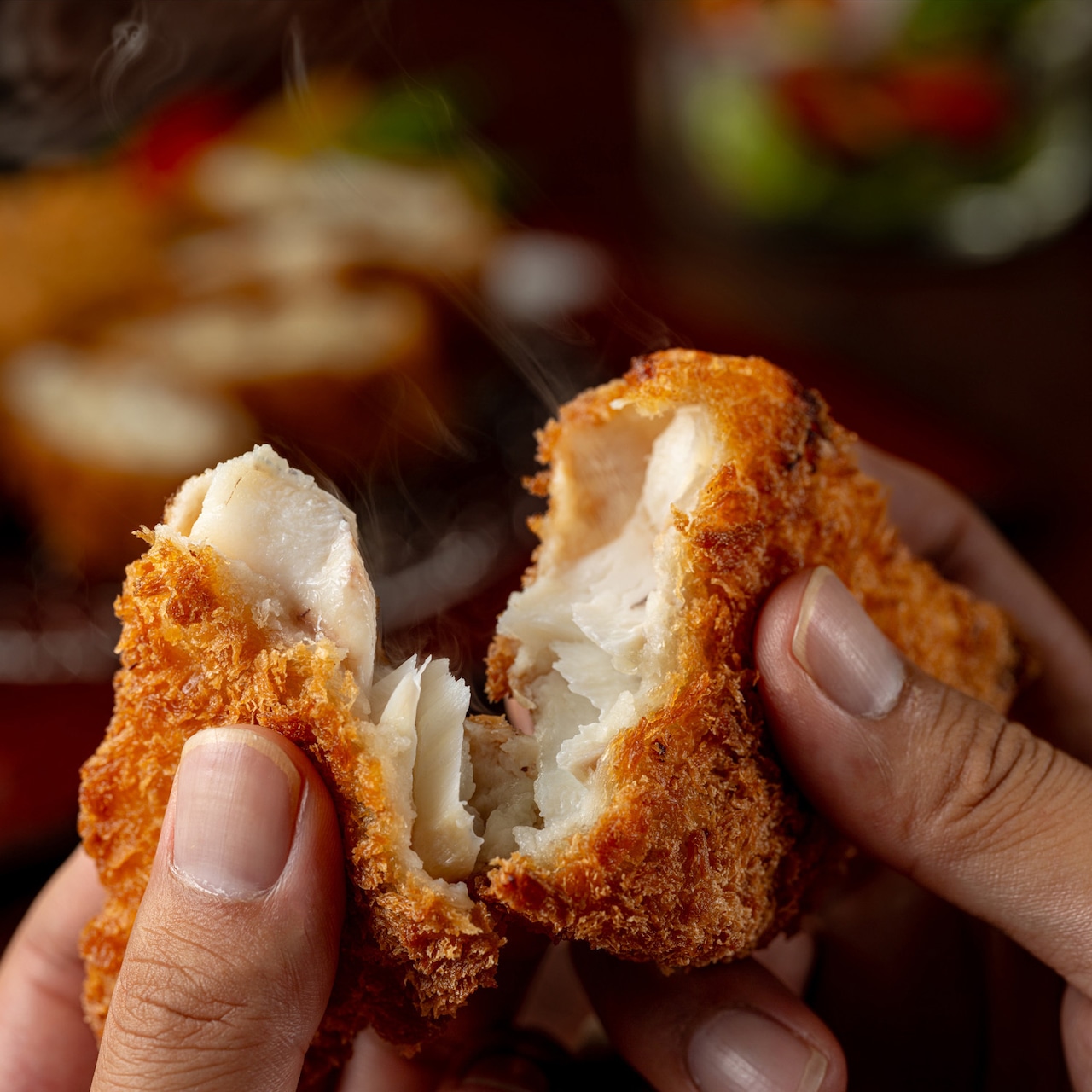 原材料名:真鱈(岩手県産)、衣(パン粉(小麦・大豆を含む)、小麦粉、でん粉、粉末状大豆たん白、食塩)/加工でん粉、増粘多糖類